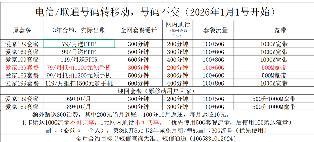 ?攜轉(zhuǎn)移動(dòng)愛家139套餐6折,送370話費(fèi)優(yōu)惠,折后79/月