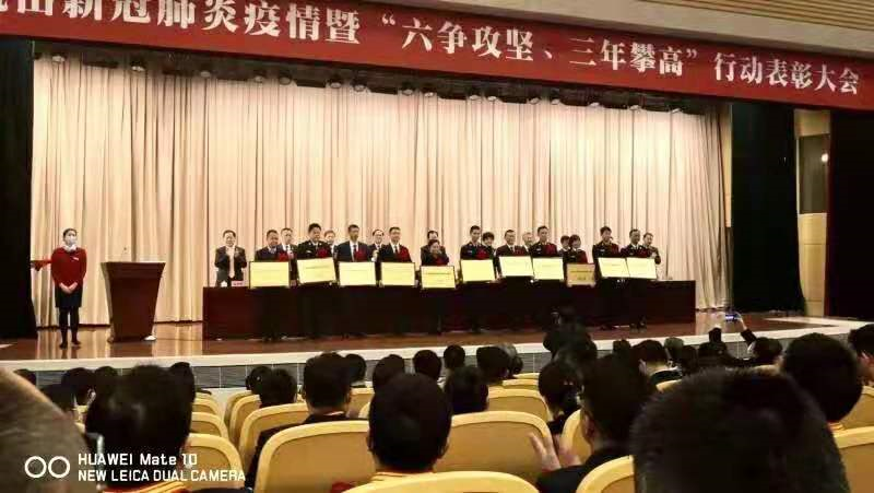 發(fā)表時間:2020-12-14 20:30作者:寧波移動客戶經(jīng)理 12月12日下午,寧波市抗擊新冠肺炎疫情暨“六爭攻堅、三年攀高”行動表彰大會隆重舉行,市委副書記、市長裘東耀致辭,市人大常委會主任余紅藝出席,市委副書記宋越舜主持會議,其他市委常委、市人大常委會副主任、副市長、市政協(xié)副主席等參加會議。寧波移動政企客戶部作為唯一的運營商代表榮獲“寧波市抗擊新冠肺炎疫情先進集體”稱號。
